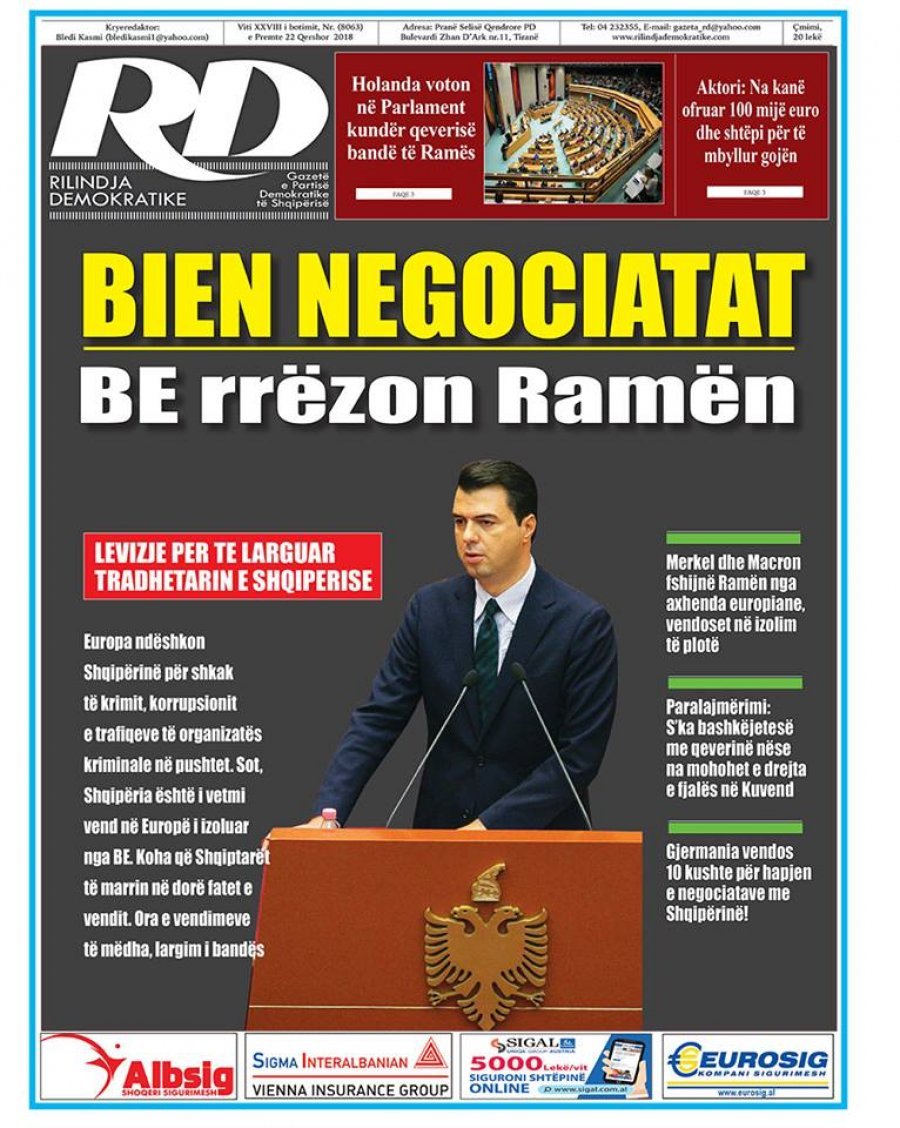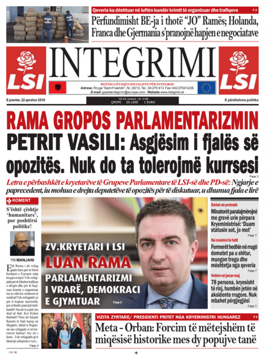 FOTO/ Faqet e para të shtypit të ditës, 22 Qershor 2018… KryesoretRisi By Pa frike Last updated Qer 21, 2018 91 Këto janë titujt kryesorë të gazetave të datës 22 Qershor 2018. faqet e paragatetatshtypi i dites 91 Ndaj FacebookTwitterLinkedinGoogle+