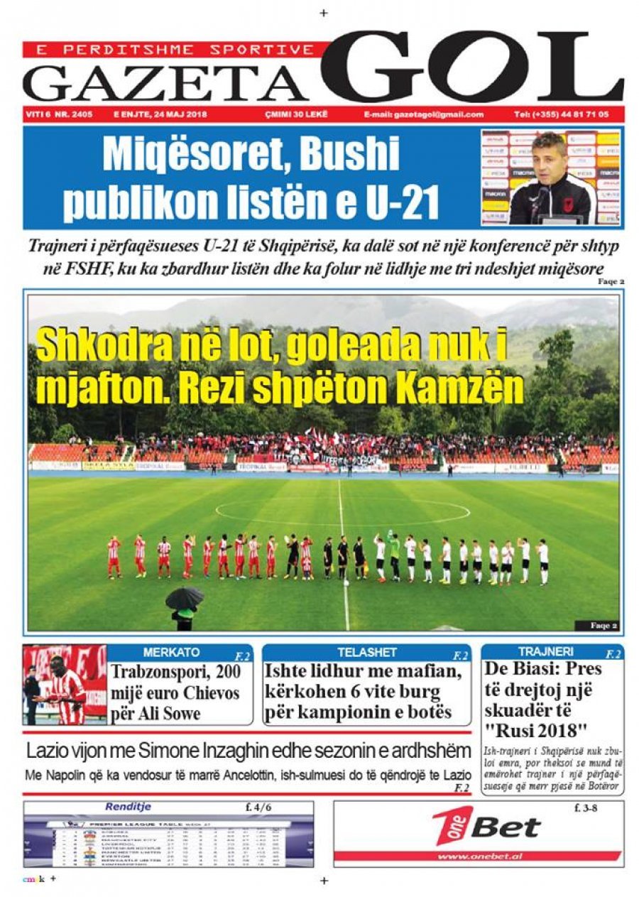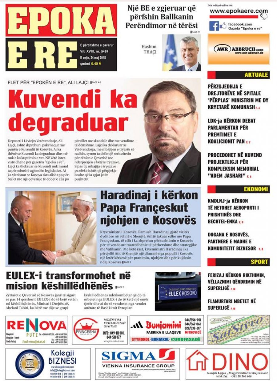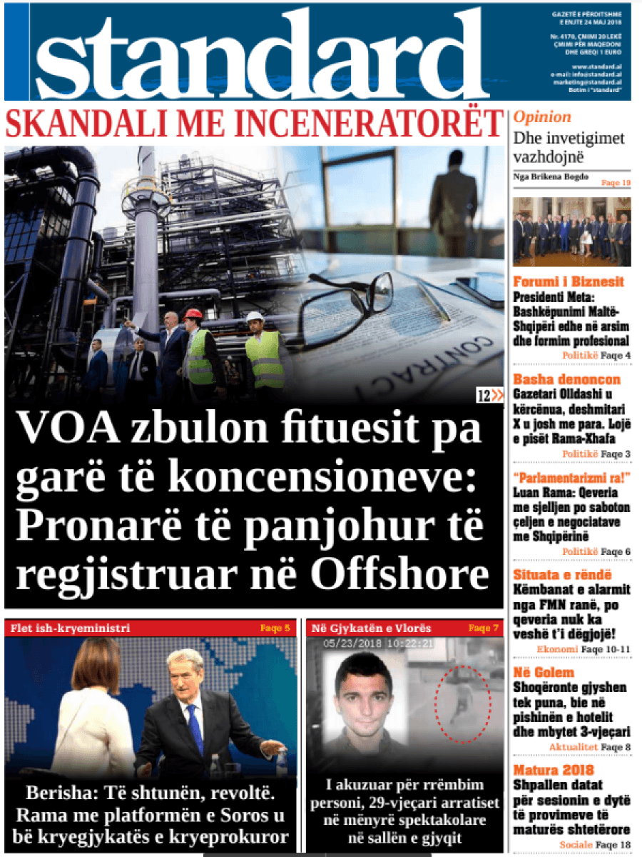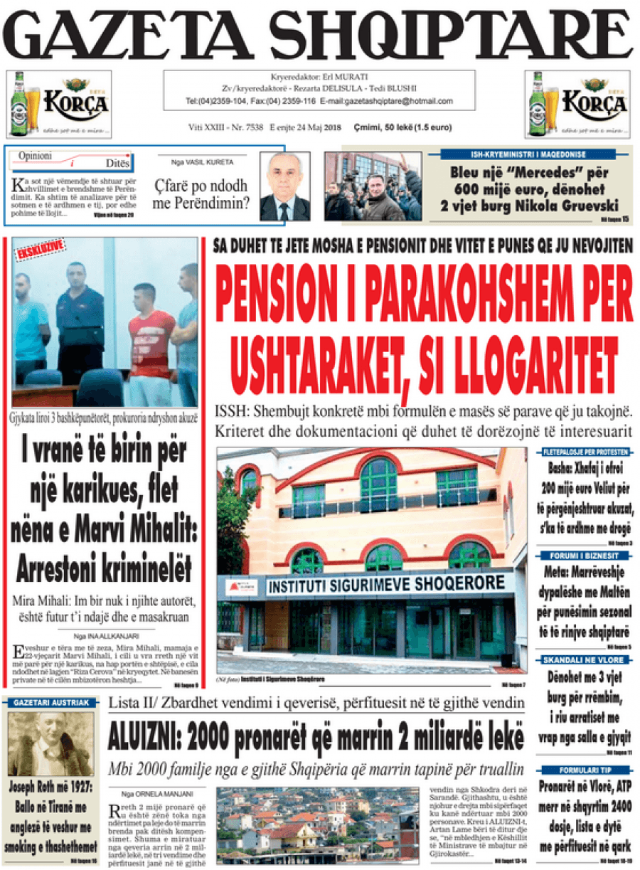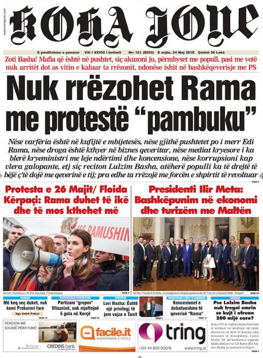 FOTO/ Faqet e para të shtypit të ditës, 24 maj 2018… RisiKryesoret By Pa frike Last updated Maj 24, 2018 104 Këto janë titujt kryesorë të gazetave të datës 24 maj 2018. faqet eparagazetatshtypi i dites 104 Ndaj FacebookTwitterLinkedinGoogle+