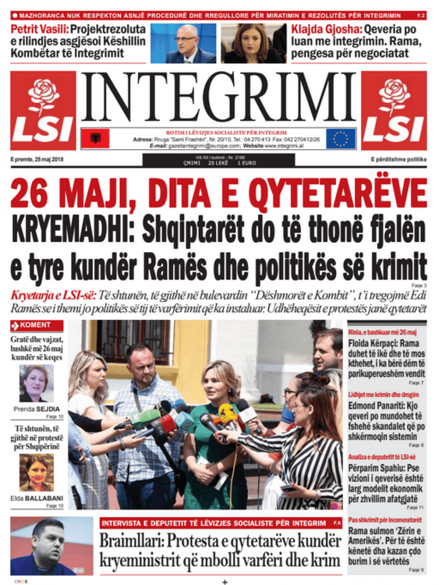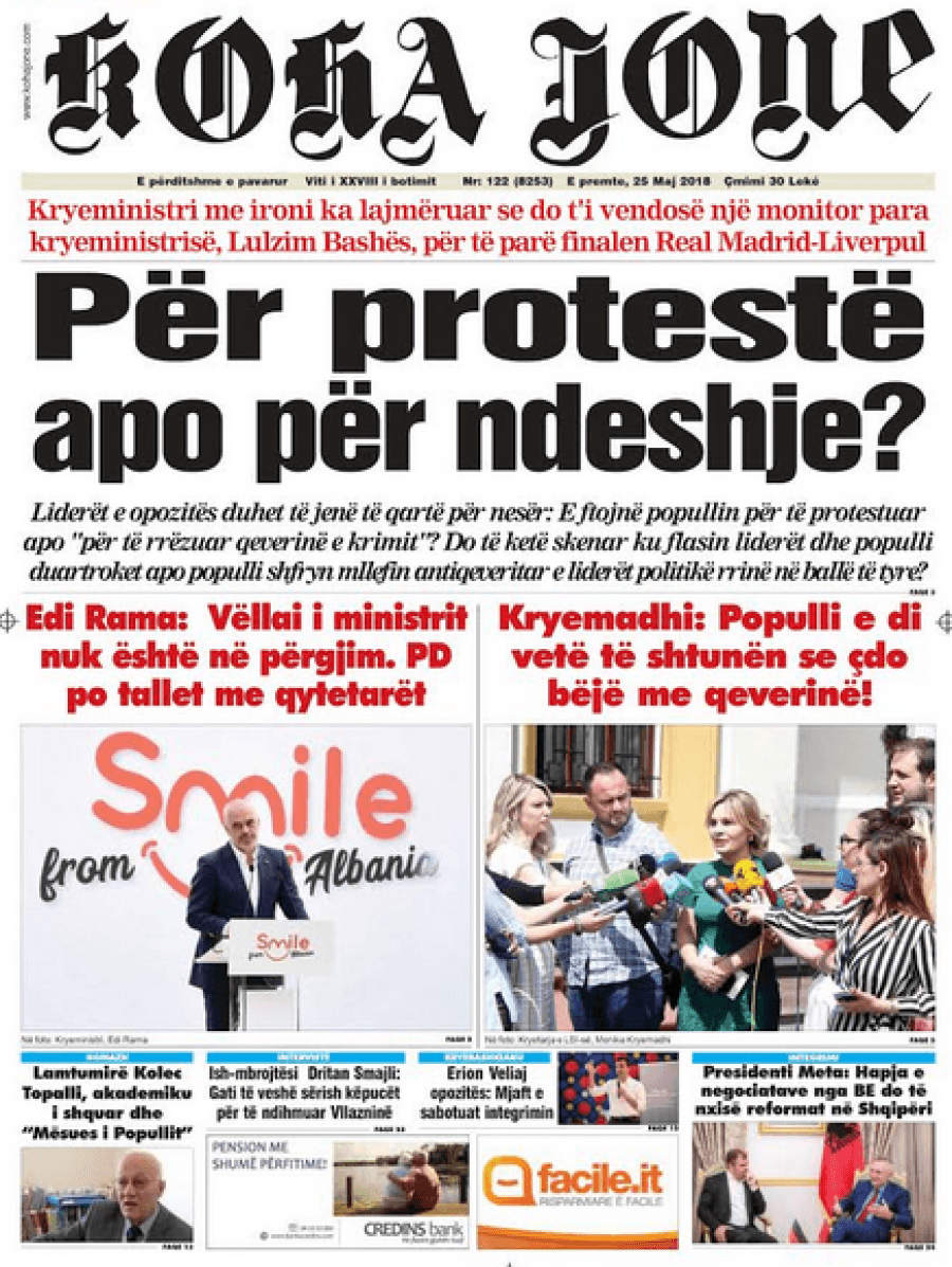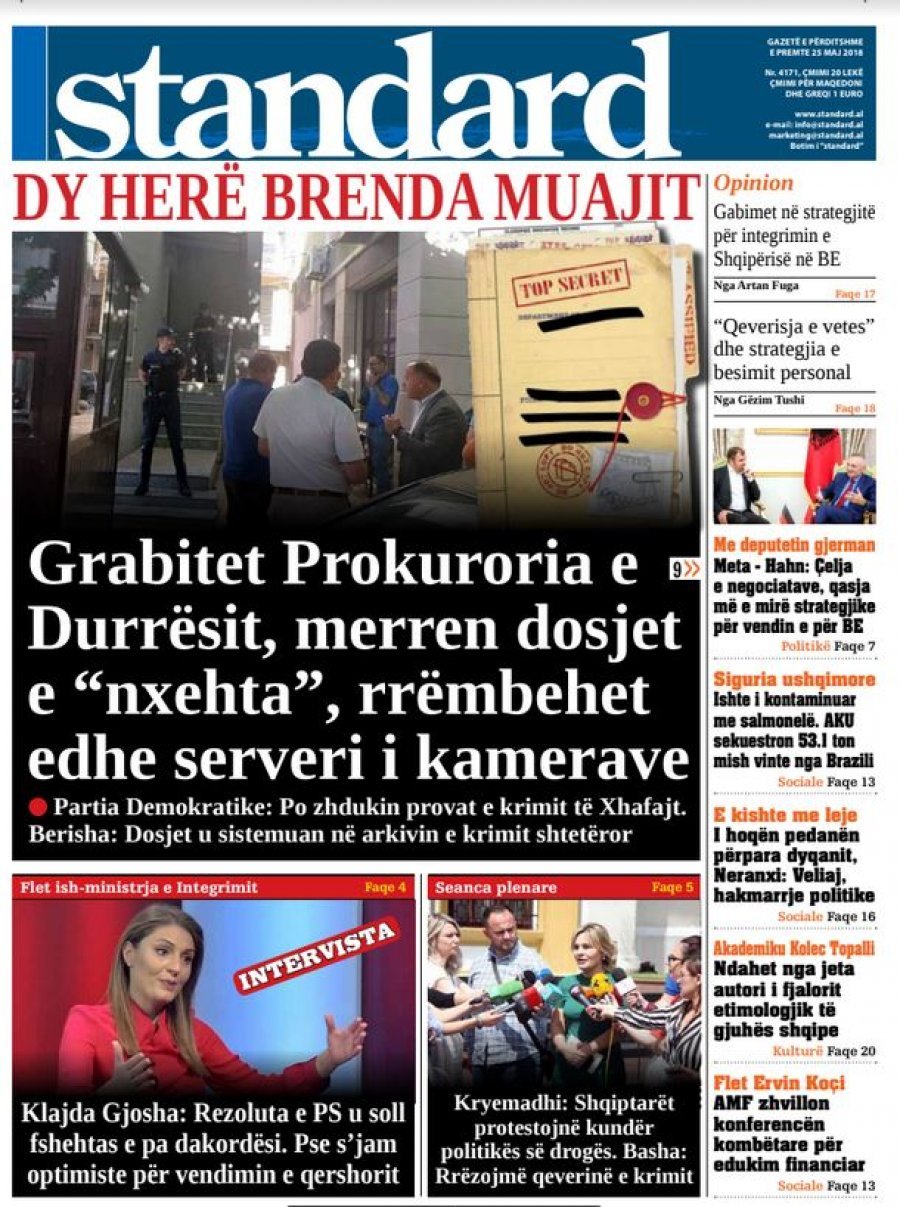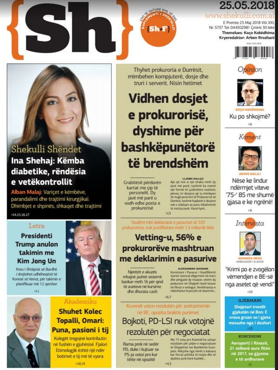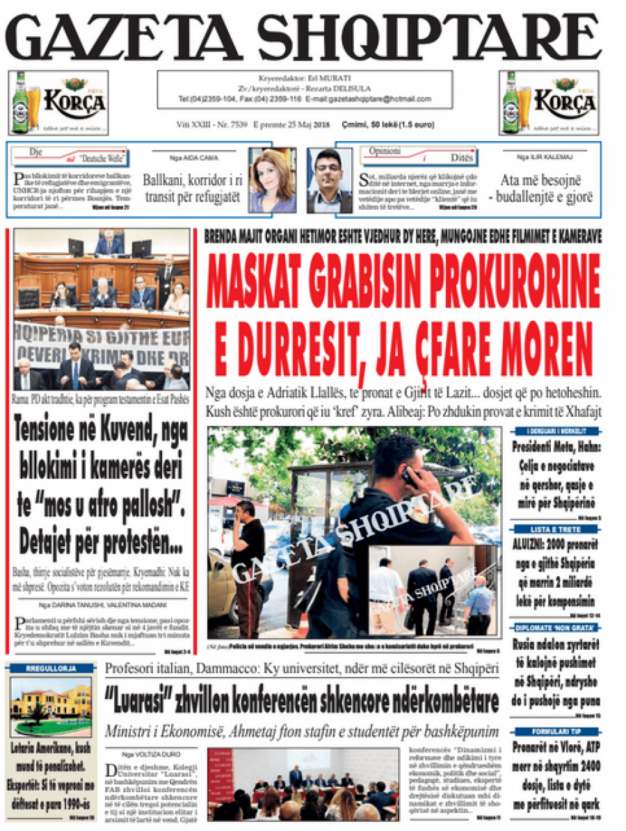 FOTO/ Faqet e para të shtypit të ditës, 25 maj 2018… RisiKryesoret By Pa frike Last updated Maj 25, 2018 91 Këto janë titujt kryesorë të gazetave të datës 25 maj 2018. faqet e paragazetatshtypi i dites 91 Ndaj FacebookTwitterLinkedinGoogle+