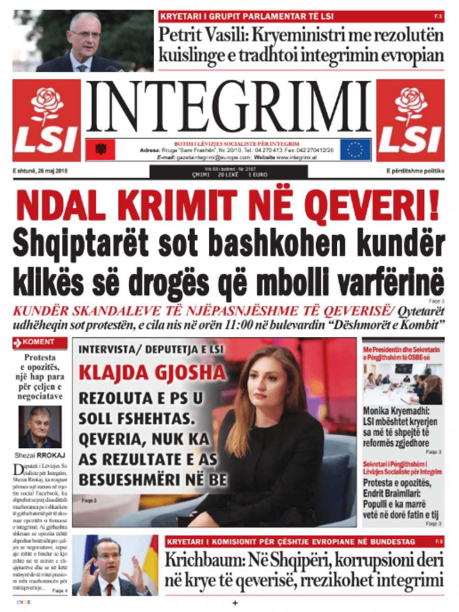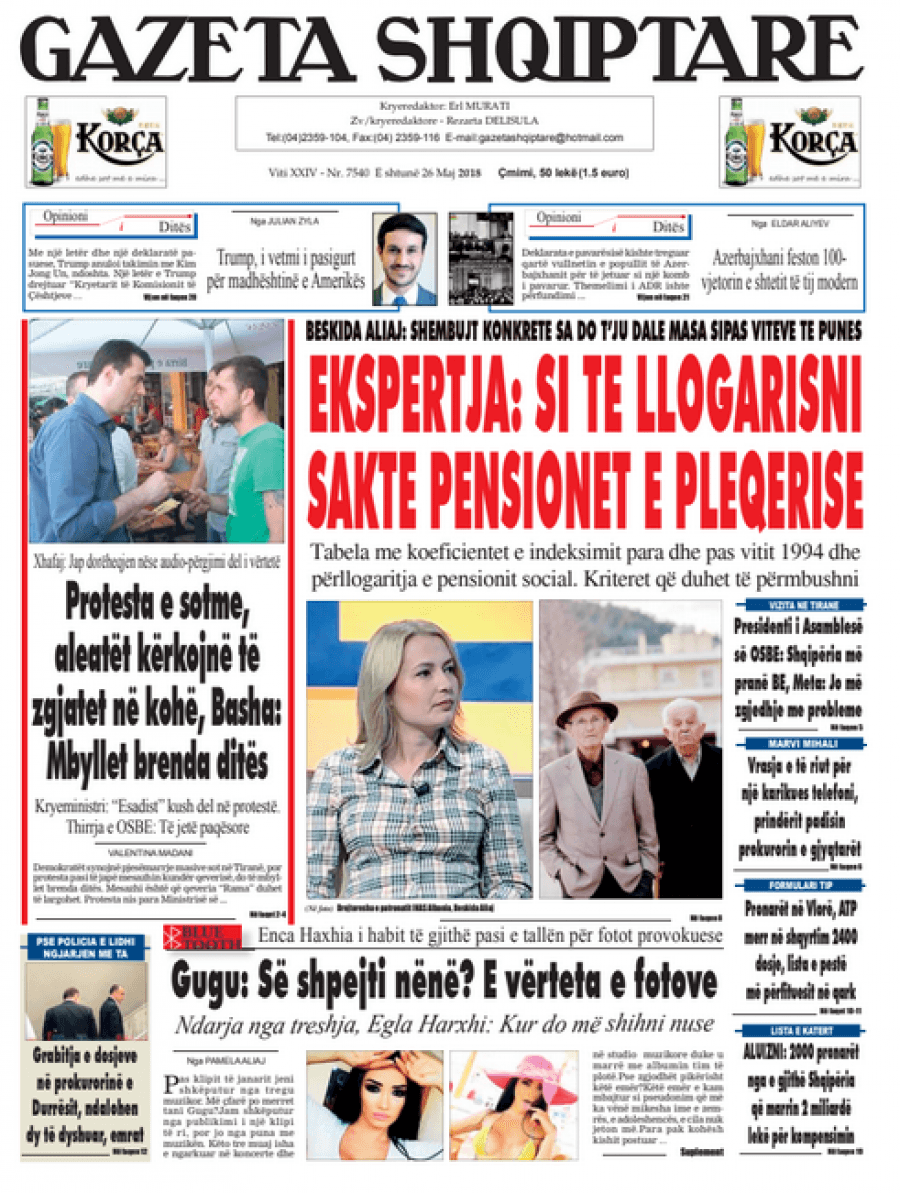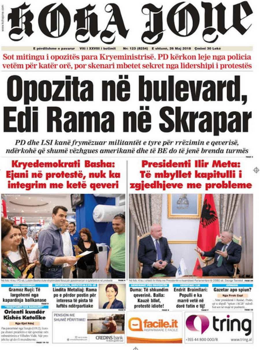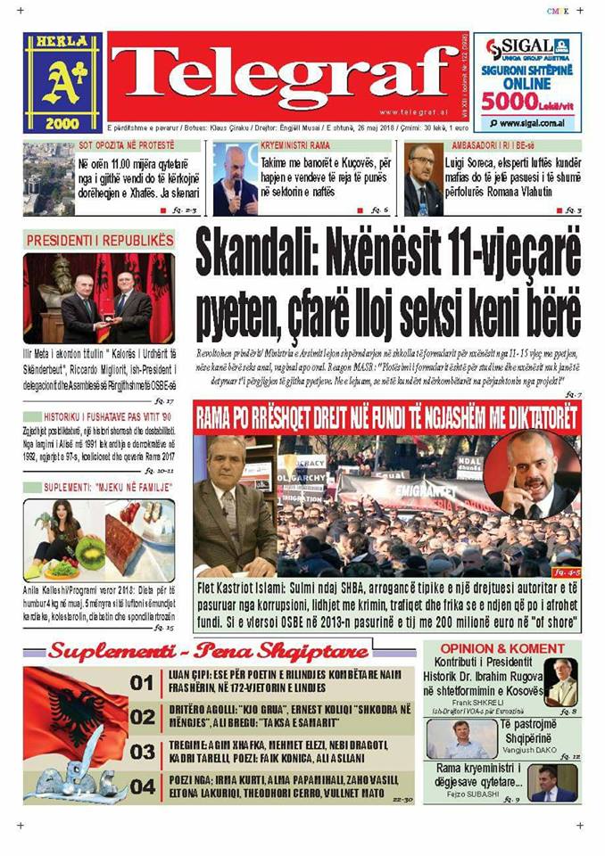 FOTO/ Faqet e para të shtypit të ditës, 26 maj 2018… KryesoretRisi By Pa frike Last updated Maj 26, 2018 104 Këto janë titujt kryesorë të gazetave të datës 26 maj 2018. faqet e paragazetatshtypi i dites 104 Ndaj FacebookTwitterLinkedinGoogle+