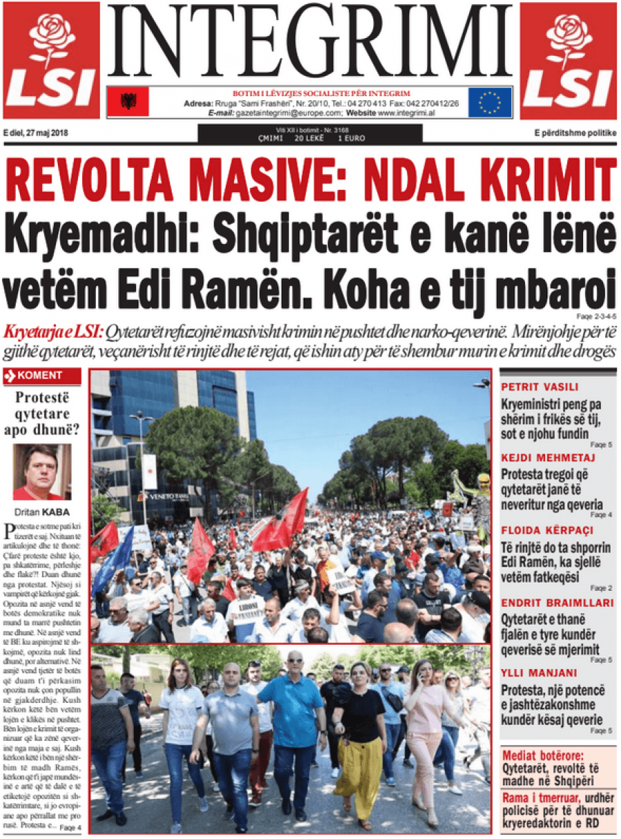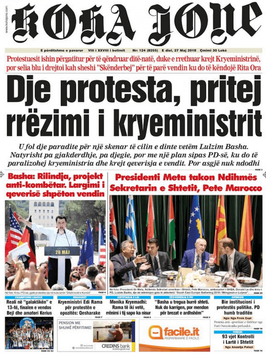 FOTO/ Faqet e para të shtypit të ditës, 27 maj 2018… KryesoretRisi By Pa frike Last updated Maj 27, 2018 80 Këto janë titujt kryesorë të gazetave të datës 27 maj 2018. faqet e paragazetatshtypi i dites 80 Ndaj FacebookTwitterLinkedinGoogle+