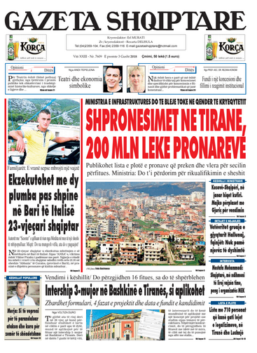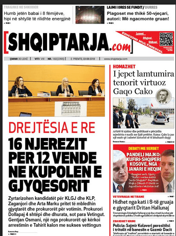 Foto/ Faqet e para të shtypit të ditës, 3 gusht 2018… KryesoretRisi By Pa frike Last updated Gus 3, 2018 110 faqet e parashtypii dites 110 Ndaj FacebookTwitterLinkedinGoogle+