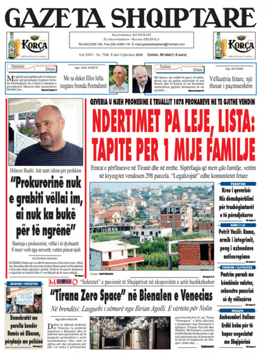 FOTO/ Faqet e para të shtypit të ditës, 3 Qershor 2018… KryesoretRisi By Pa frike Last updated Qer 3, 2018 87 Këto janë titujt kryesorë të gazetave të datës 3 Qershor 2018. faqet e paragazetatshtypi i dites 87 Ndaj FacebookTwitterLinkedinGoogle+