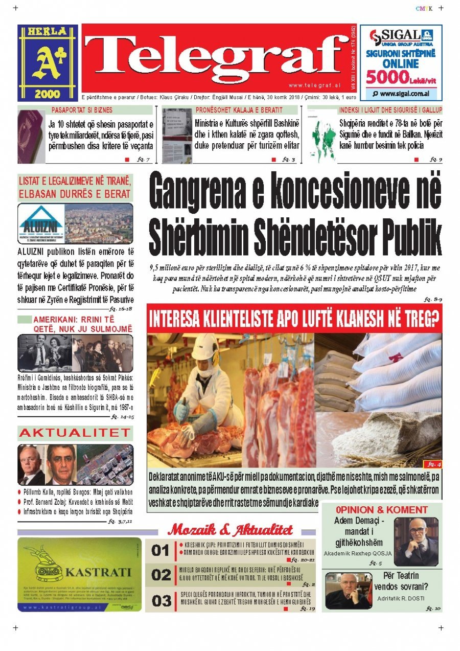 FOTO/ Faqet e para të shtypit të ditës, 30 korrik 2018… KryesoretRisi By Pa frike Last updated Kor 30, 2018 101 Këto janë titujt kryesorë të gazetave të datës 30 Korrik 2018. gazetatmediatshtypi i dites 101 Ndaj FacebookTwitterLinkedinGoogle+