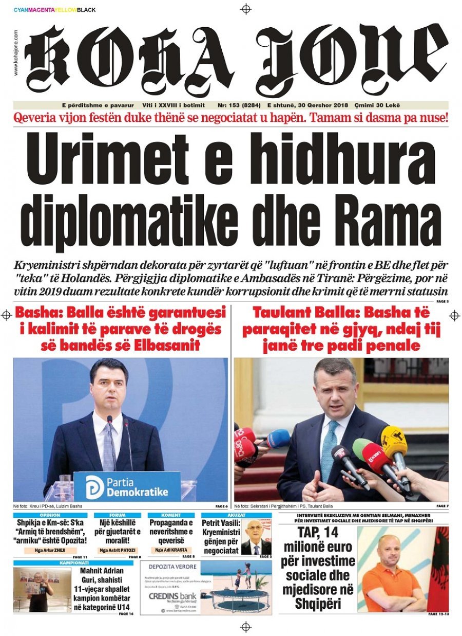 FOTO/ Faqet e para të shtypit të ditës, 30 Qershor 2018… KryesoretRisi By Pa frike Last updated Qer 30, 2018 101 Këto janë titujt kryesorë të gazetave të datës 30 Qershor 2018. faqet e paragazetatshtypi i dites 101 Ndaj FacebookTwitterLinkedinGoogle+