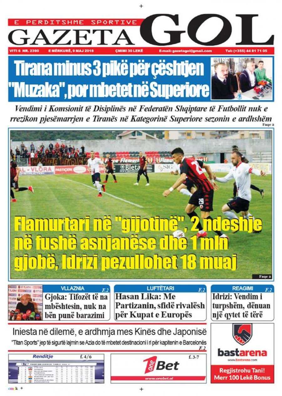 FOTO/ Faqet e para të shtypit të ditës, 9 maj 2018… KryesoretRisi By Pa frike Last updated Maj 9, 2018 75 Këto janë titujt kryesorë të gazetave të datës 9 maj 2018. shtypi gazeta faqet e para 75 Ndaj FacebookTwitterLinkedinGoogle+