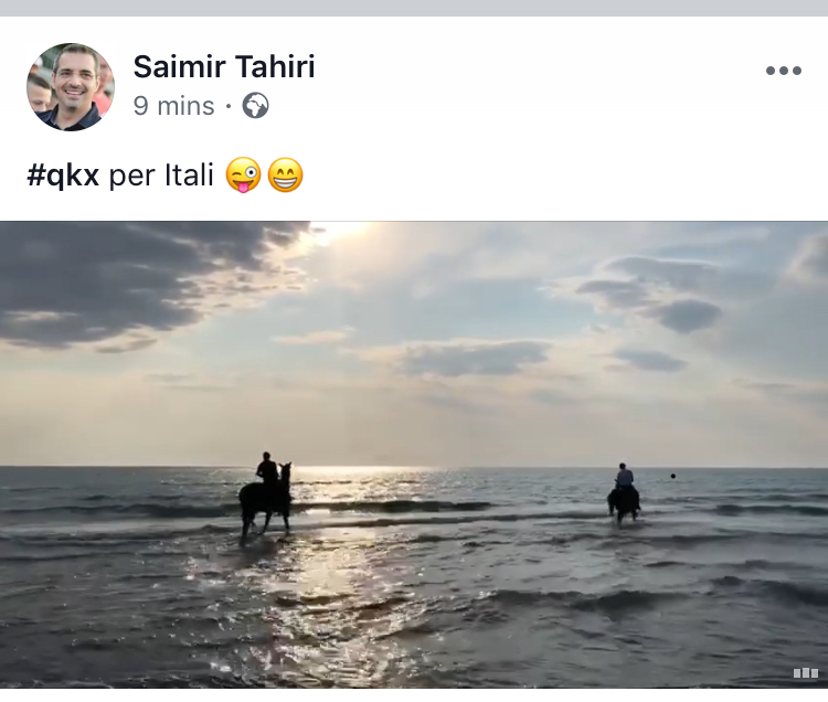 Ish-ministri i Brendshëm Saimir Tahiri, me anë të disa fotove të bëra publike në Facebook, duket se po shijon pushimet e verës. Tahiri në shoqërinë e kalit të tij, tregon se është i lumtur dhe në një postim shkruan: Për Itali.