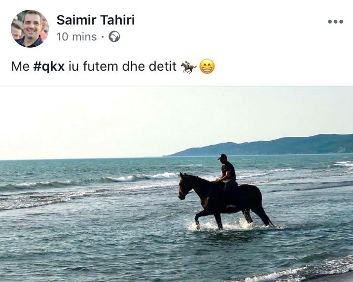 Ish-ministri i Brendshëm Saimir Tahiri, me anë të disa fotove të bëra publike në Facebook, duket se po shijon pushimet e verës. Tahiri në shoqërinë e kalit të tij, tregon se është i lumtur dhe në një postim shkruan: Për Itali.