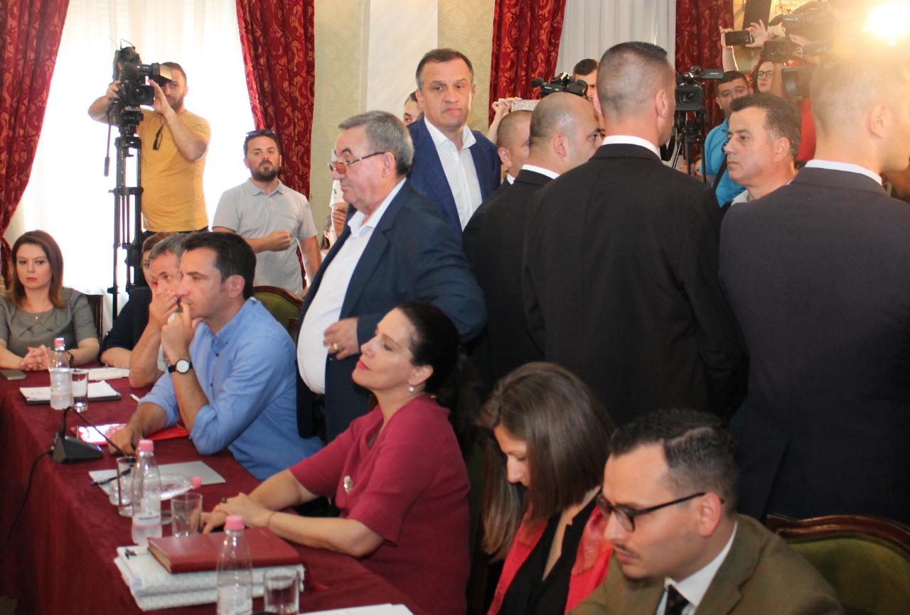 Në ndihmë të tyre janë rreshtuar edhe punonjësit e sigurisë së Kuvendit, që kanë zgjedhur më mirë të mbrojnë Kryebashkiakun se të zbatojnë një urdhër të Kryetares së Kuvendit.