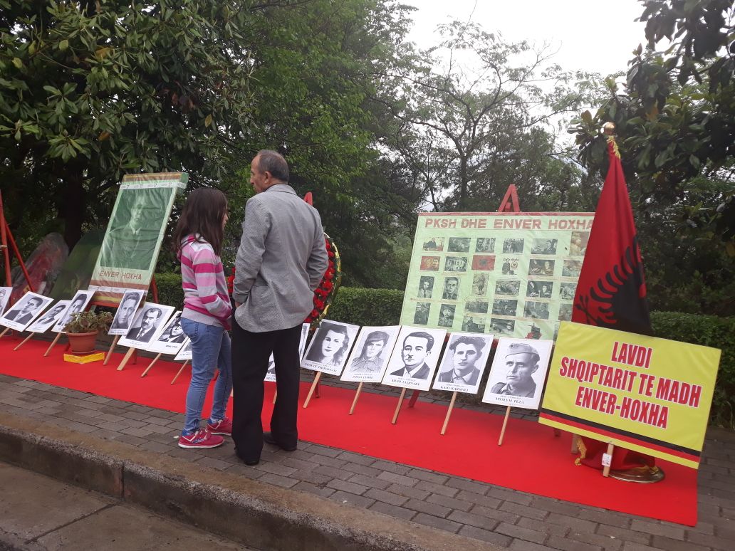 Me pankarta në nder të diktatorit Enver Hoxha dhe figurave të tjera kyçe të Luftës së Dytë Botërore, nostalgjikët e diktaturës janë shfaqur në varrezat e Dëshmorëve, pak përpara nisjes së ceremonive zyrtare lidhur me këtë datë.