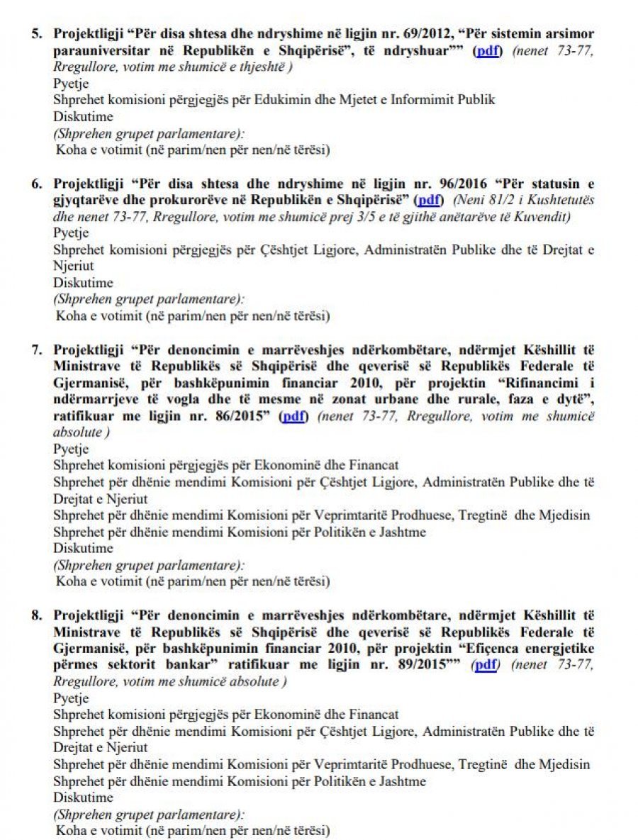 Gjithashtu në seancë është edhe pr/ligji për ndryshimet në Kodin Rrugor, që kërkon miratim me 84 vota.