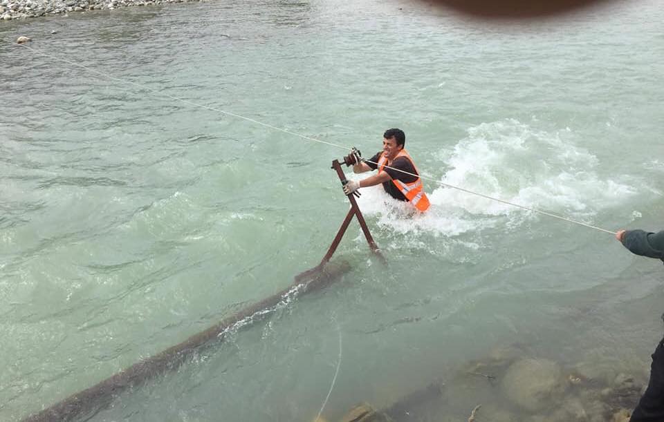 Shihni pa koment punën që bën mes ujit të rrëmbyer ky punonjës.