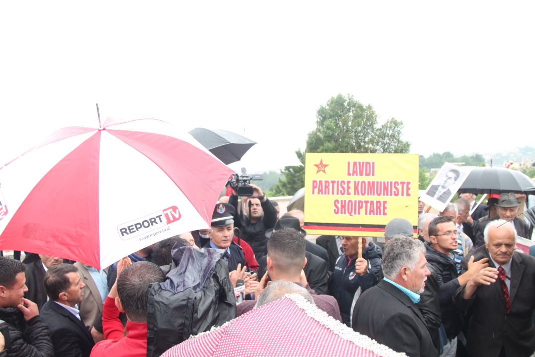 Ithtarët e diktatorit kanë brohoritur “Rroftë Enver Hoxha”, ndërsa një tjetër qytetar ka reaguar ““Enver Hoxha te q.. r…”.
