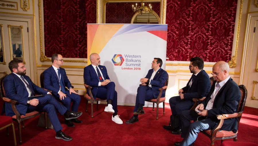 “Kryeministrat e Shqipërisë dhe Greqisë Edi Rama e Aleksis Tsipras zhvilluan sot një takim, gjatë Samitit të Ballkanit Perëndimor që mbahet në Londër.