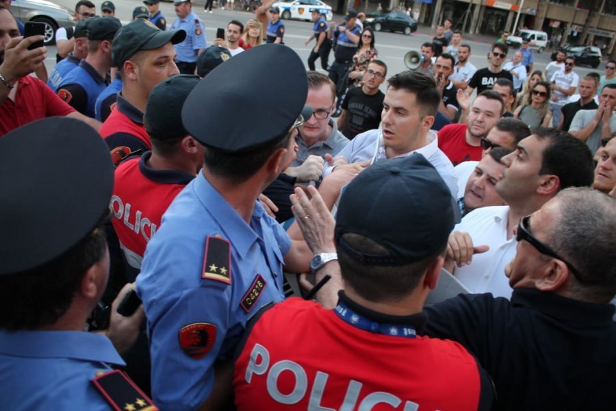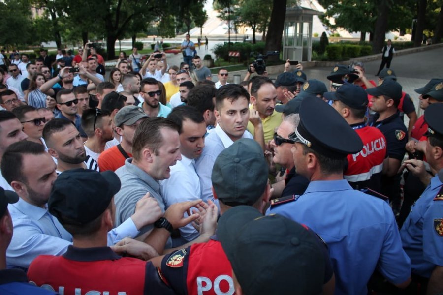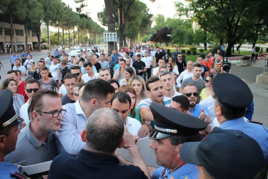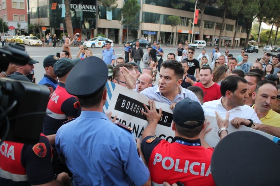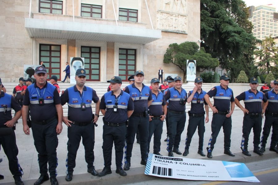 Disa dhjetra force policore u angazhuan para godinës së qeverisë, duke tentuar të ndërpresin protestën e të rinjve të FRPD-së, që mbanin në duar një banderolë në formën e një bilete udhëtimi për Edi Ramën me destinacion Kolumbinë.