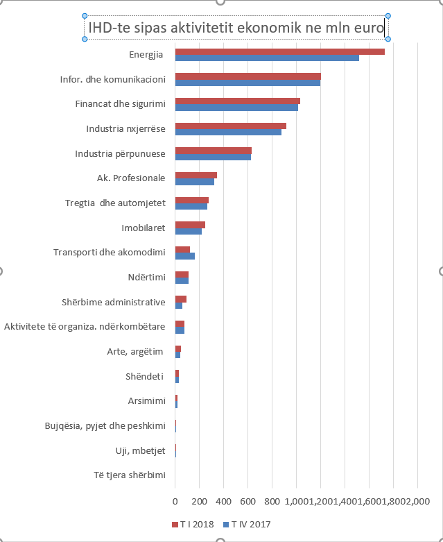 Edhe në tremujorin e parë stoku i investimeve në sektorin e Energjia elektrike, gazi, avulli ka kaluar në vend të parë, me mbi 1.7 miliardë euro me një zgjerim 12 për qind në tremujorin e parë duke ja kaluar edhe grupit “Informacioni dhe komunikacioni”, që historikisht ka qenë sektori që ka tërhequr më shumë investime në Shqipëri dhe ka një stok prej gati 1.2 miliardë eurosh.
