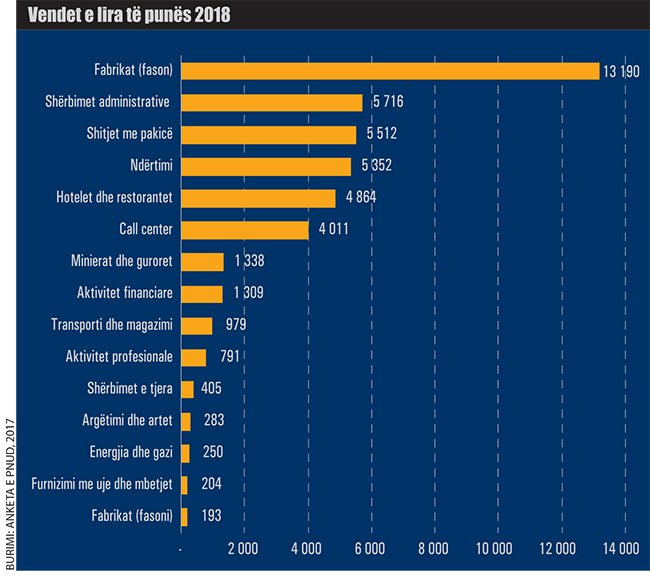 Bizneset e mëdha presin të punësojnë gjatë këtij viti 14 mijë e 700 persona gjithsej. Sektori fason ka vënë në dispozicion 7100 vende të reja pune këtë vit, nga të cilat rreth 3800 punonjës të rinj kërkohen nga rrobaqepësitë dhe 2500 nga fabrikat e këpucëve.