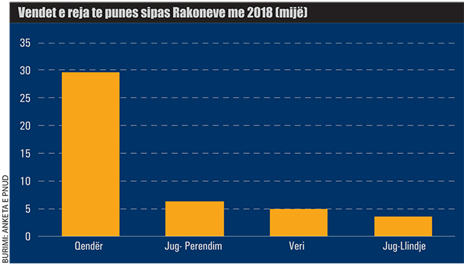 Më e lehtë për të gjetur punonjës është në Rajonin Qendror sesa në tre rajone të tjera të Lindjes, Jugut dhe Veriut.
