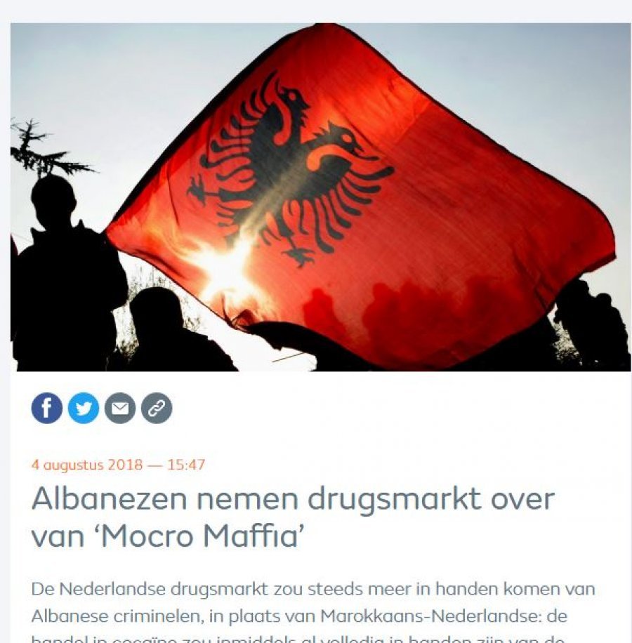 “Disa burime thonë se shqiptarët marrin përsipër pozitën e kriminelëve marokenë të drogës në Holandë. Deri kohët e fundit, grupe të tilla si ato të Utrehtit sollën sasi të mëdha të kokainës. Likuidime të shumta brutale u përqendruan në makro-mafia, të tilla si vrasja e vëllait të dëshmitarit kryesor Nabil B. më parë këtë vit. Për shkak të gjithë kësaj vëmendje, marokenët kanë vështirësi të bëjnë biznes”, raporton një tjetër medie holandeze.