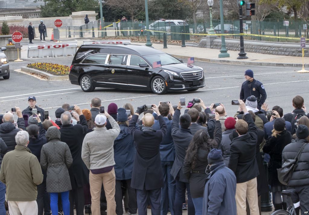 Para funeralit shtetëror në Katedralen Kombëtare të Washingtonit, trupi i Presidentit George H.W. Bush u mbajt për homazhe në Hollin e Kapitolit. Vizitorët e shumtë qëndruan në radhë të gjata, për t’i bërë nderimet e fundit ish udhëheqësit amerikan, që e kanë karakterizuar si një njeri të qetë, por njëkohësisht me karakter të fortë dhe të guximshëm.