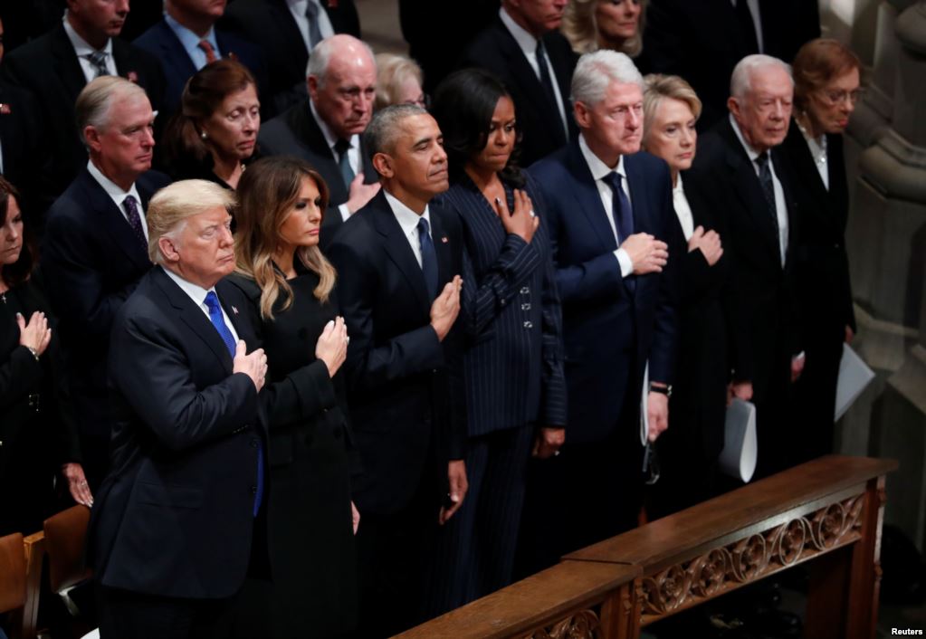 Ish-presidentët amerikanë Jimmy Carter, Bill Clinton dhe Barack Obama iu bashkuan Presidentit Donald Trump, gjatë shërbimit të përmortshëm për ish-presidentin George H.W. Bush në Katedralen Kombëtare të Washingtonit, ku fjalimi kryesor u mbajt nga George W. Bush, djali i presidentit të ndjerë si dhe Presidenti i 43-të i SHBA-së.