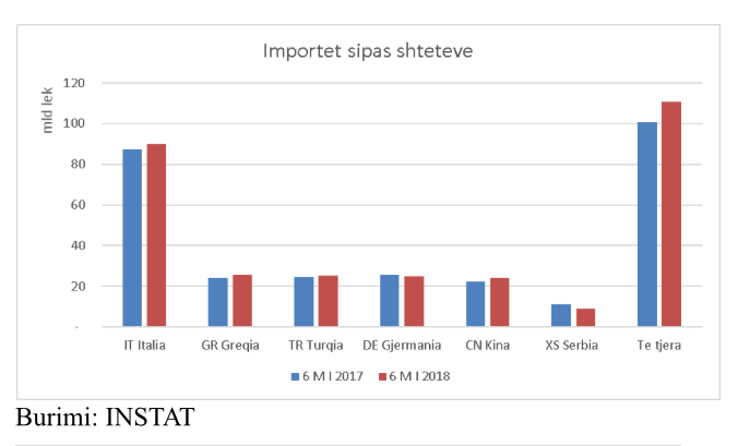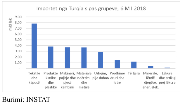 Turiqia është partneri i tretë tregtar i Shqipërisë, përsa i përket importeve, me 8.1% të totalit për 6 mujorin e parë, pas Italisë (29%) dhe Greqisë (8.3%).