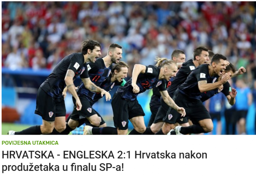 “Kroaci 2-1 Angli. Kroacia pas vazhdimeve është në finale të Botërorit”, shkruan Index.hr.