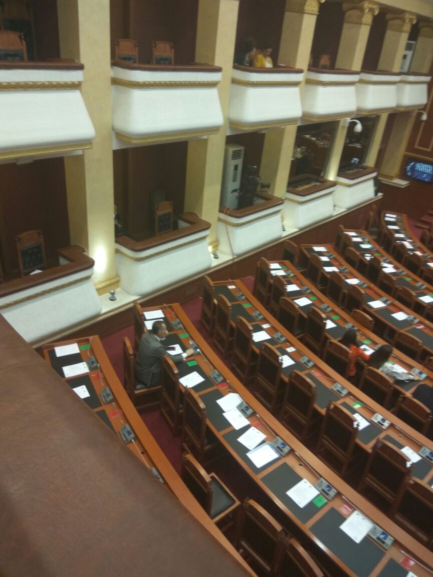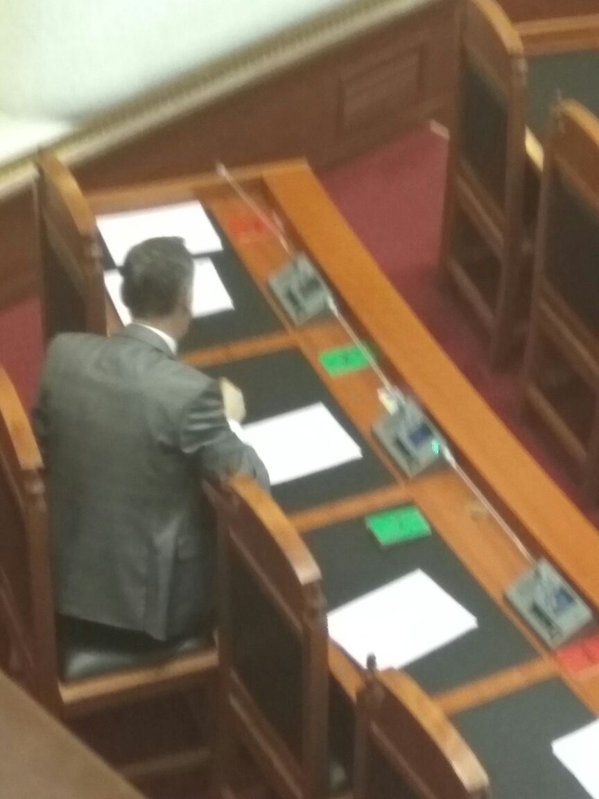 Bëhet fjalë për deputetin e LSI-së në Shkodër, Argon Çela, i cili është fotografuar në vendin e tij në fund të sallës së punimeve të parlamentit, teksa kryeparlamentari Ruci po hidhte ligjet në votim.