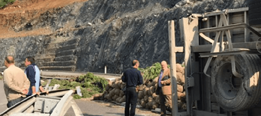 Gjatë orëve të mengjesit është përmbysur një trajler me fidane në Rrugën e Kombit. Aksidenti ka ndodhur 3 kilometra afër vendit të quajtur Ura e Kukësit. Shoferi është në gjendje të rëndë, por nuk dihet nëse ka të lënduar të tjerë nga aksidenti .