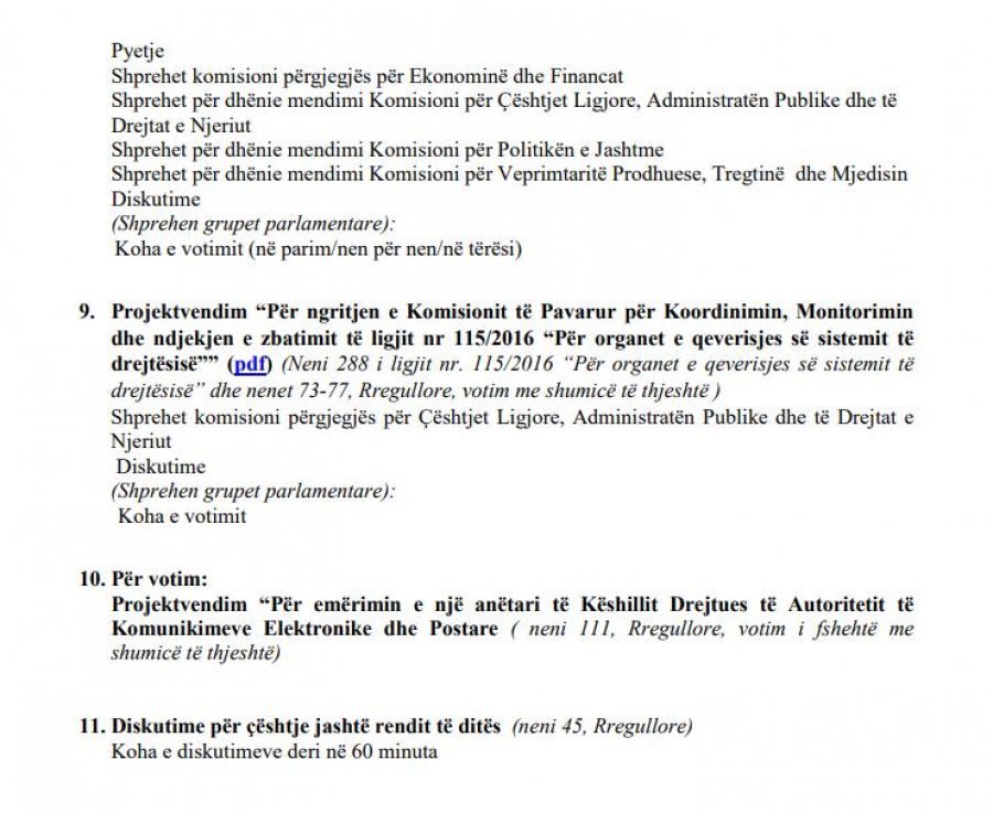 Kuvendi do të mblidhet në seancë plenare në orën 10:00 në një seancë e cila pritet të mos jetë shumë e qetë.