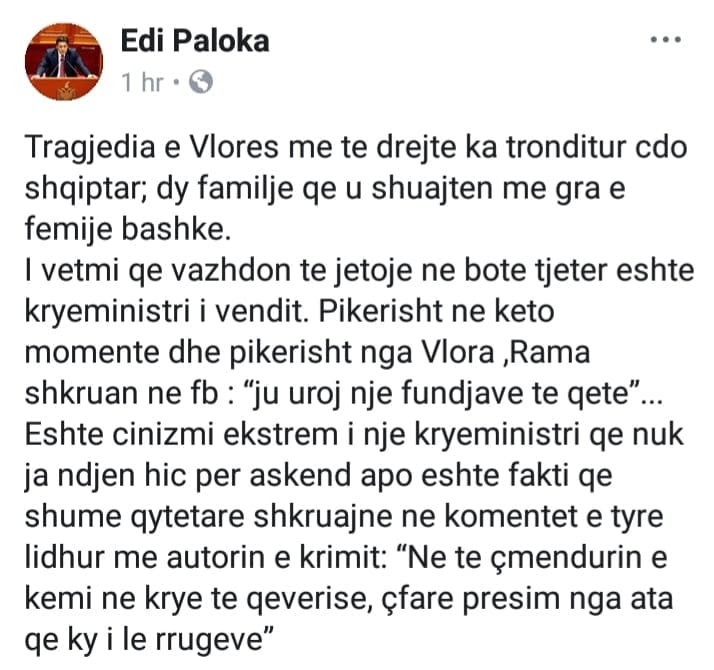 Është cinizmi ekstrem i një kryeministri që nuk ja ndjen hiç për askënd apo është fakti që shumë qytetarë shkruajnë në komentet e tyre lidhur me autorin e krimit:
