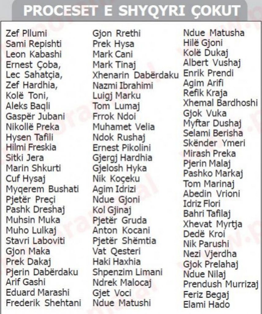 Shyqyri Çoku ka hetuar dhe torturuar 92 të dënuar, kryesisht politikë (më poshtë lista e plotë). “Çoku, i cili e ka mbyllur karrierën e tij si oficer i lartë i Sigurimit në vitin 1990, ka qenë hetues në çështje të rëndësishme, kryesisht në Veri të vendit, me përfaqësues të lartë të kishës katolike. Ndër më të spikaturit mbeten At Zef Pllumi, por edhe imzot Ernest Çoba, Ipeshkëv i dioqezës së Shkodrës, apo meshtarin Marin Shkurti dhe vëllain e tij, Ndrekë Shkurti, po ashtu edhe Dom Lec Sahatçinë. Ata që kanë vuajtur nga torturat e Çokut dhe proceset e improvizuara politike të tij, tregojnë se ai ishte një njeri që donte të përmbushte misionin e luftës ndaj klerit, duke përpiluar deklarata dhe fakte të paqena në dosjet e tyre,” shkruan Panorama.