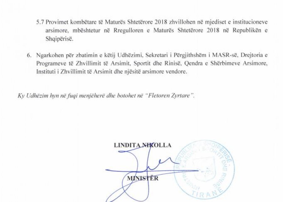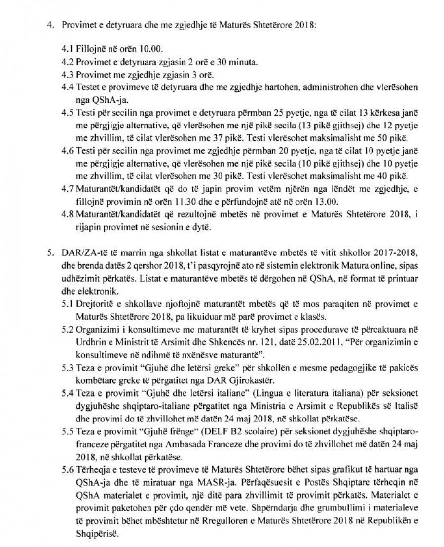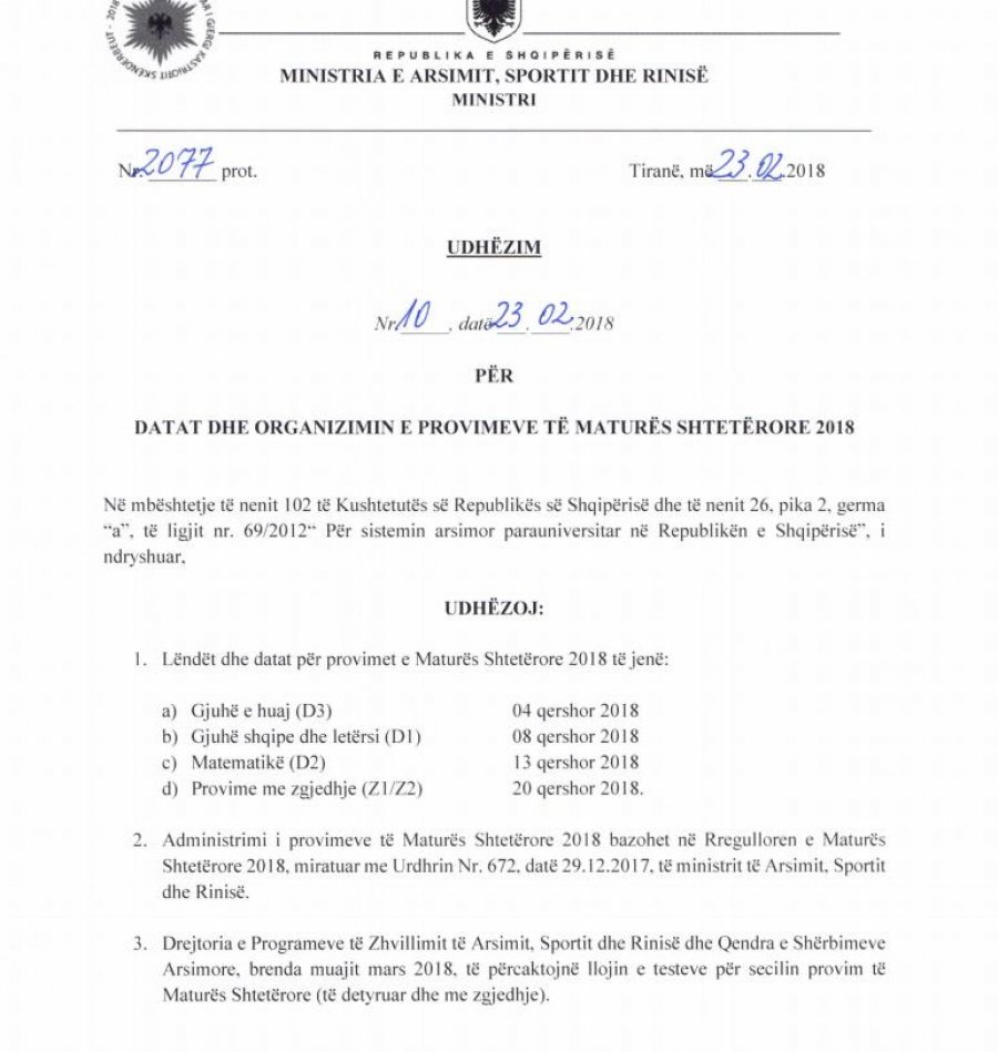 Më datën 8 qershor kryhet provimi i gjuhës shqipe dhe letërisë, më 13 qershor jepet matematika dhe më 20 qershor, lëndët me zgjedhje. Ja udhëzimi i plotë me të gjitha detajet.