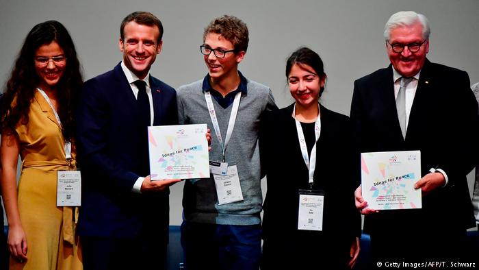 Për Emmanuel Macronin dhe Frank-Walter Steinmeierin dita nisi në një kinema të vjetër në pjesën lindore të Berlinit. Nën titullin “Youth for Peace – 100 vjet Lufta e Parë Botërore, 100 ide për paqen” atje u takuan në këtë fundjavë 500 të rinj nga 48 shtete të Evropës, Afrikës dhe Lindjes së Afërme, për të diskutuar si mund të sigurohet paqja në botën më të paqetë dhe si mund të forcohet kohezioni”