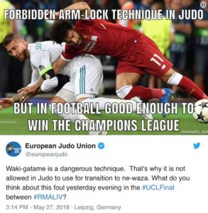 Ramos, i cili nuk mori karton për atë lëvizje, është kritikuar pafund nga mediat sociale – dhe Shoqata Europiane Xhudos mund t’i shtohet tashmë listës së gjatë të kritikave.