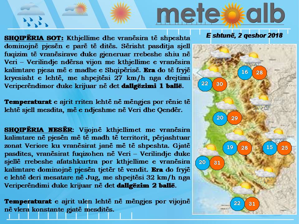 Parashikimi i motit për datën 2 Qershor KryesoretRisi By Pa frike Last updated Qer 2, 2018 146 meteoalbparashikimi i motitvranesira 146 Ndaj FacebookTwitterLinkedinGoogle+