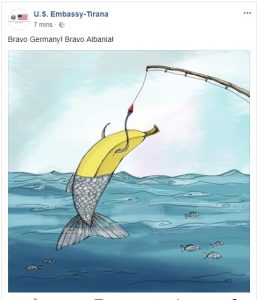 Me anë të një fotoje të publikuar në rrjetin social Facebook, Ambasada Amerikane përshëndet këtë arrestim me mesazhin: