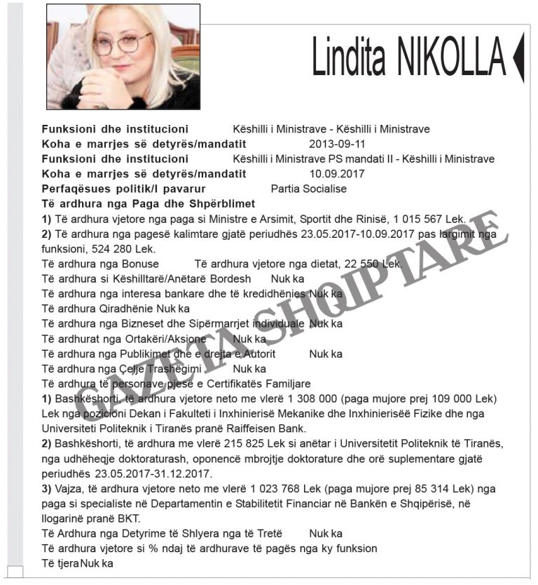 “Gazeta Shqiptare” publikon pasuritë e kabinetit qeveritar, të cilat u referohen deklaratave të pasurisë, dorëzuar prej tyre në Inspktoratin e Lartë të Deklarimit dhe Kontrollit të Pasurive, të cilat janë zbardhur nga “Open Spending Albania”.
