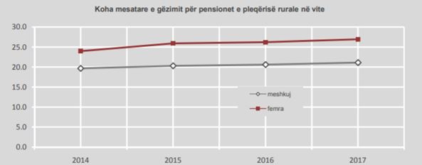 Nga viti 2014 koha e gëzimit të pensionit është rritur dukshëm për të dyja gjinitë si në fshat dhe në qytet.