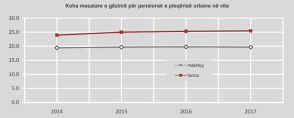 Sipas të dhënave mesatarisht koha e pensionimit ishte 24 vite për femrat, teksa shihet se gjatë këtyre katër viteve jetëgjatësia për femrat në qytet është rritur me 1 vit, ndërsa në fshat jetëgjatësia është rritur me më shumë se dy vite.