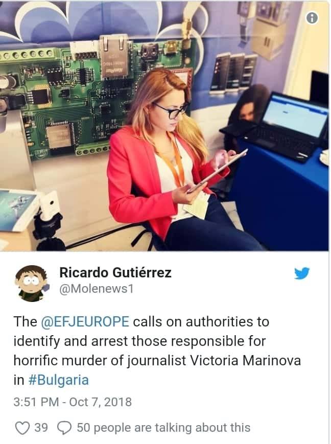 Autoritetet kanë bërë publike vetëm inicialet e viktimës dhe profesionin. Ndërkohë mediat lokale theksojnë se bëhet fjalë për Victoria Marinova, moderatore, reportere dhe producente e emisionit informativ Detector në televizionin lokal TVN.