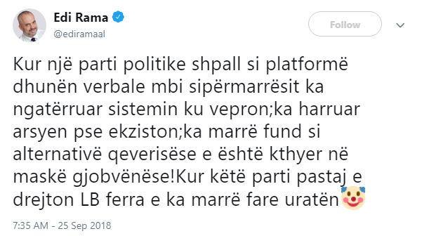 “Ka marrë fund si alternativë qeverisëse e është kthyer në maskë gjobvënëse! Kur këtë parti pastaj e drejton LB ferra e ka marrë fare uratën.”