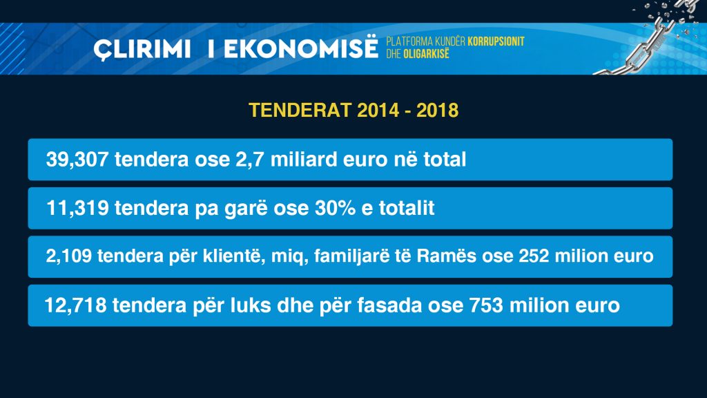Bilanci i abuzimeve në sektorin e tenderave, koncensioneve dhe monopoleve të krijuara nga ana e Qeverisë Rama është i frikshëm. Deputetja e PD, Jorida Tabaku duke shpalosur këtë bilanc përvecc shembujve foli edhe me emra konkret të aferave kryesore të këtyre 5 viteve që përfunduan me qindra qindra milliona euro para publike në xhepat e klientëve të Kryeministrit Rama.