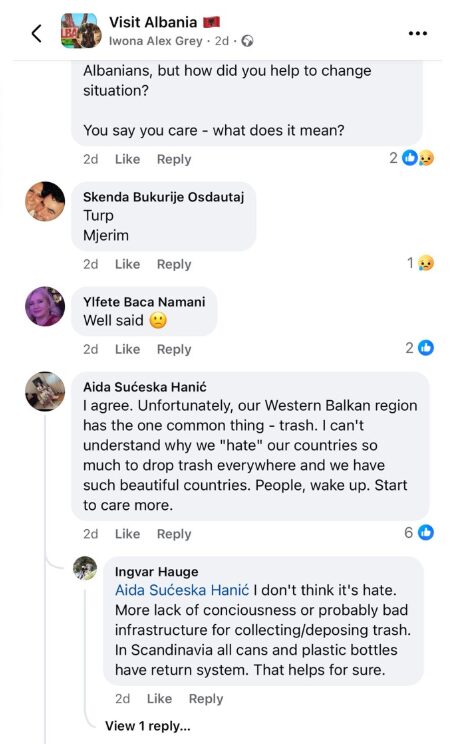 Aida H pohon se kjo është tipike për vendet e Ballkanit dhe nuk e kupton pse njerëzit urrejnë vendet e tyre, ndërkohë që një komentues tjetër i huaj shprehet se më shumë se urrejtje, bëhet fjalë për mungesë ndërgjegjësimi.