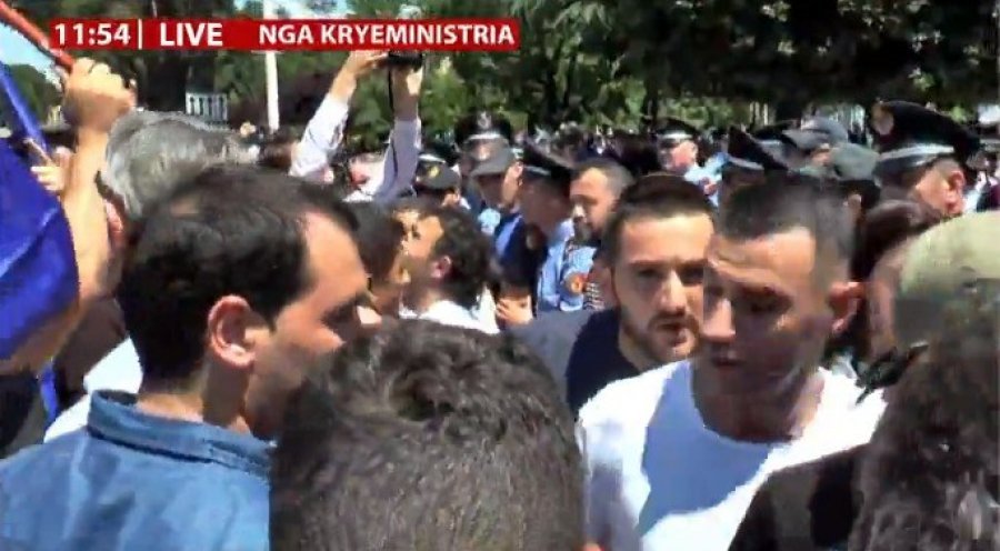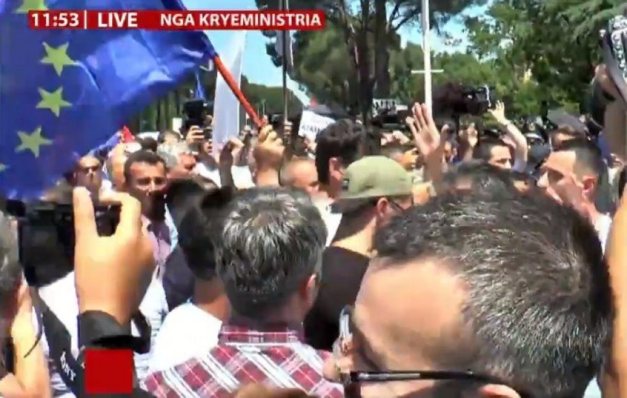 Ndërkohë protestuesit kanë marshuar para godinës së Ministrisë së Brendshme për të kërkuar dorëheqjen e Fatmir Xhafajt, i cili ndodhet në zyrën e tij.