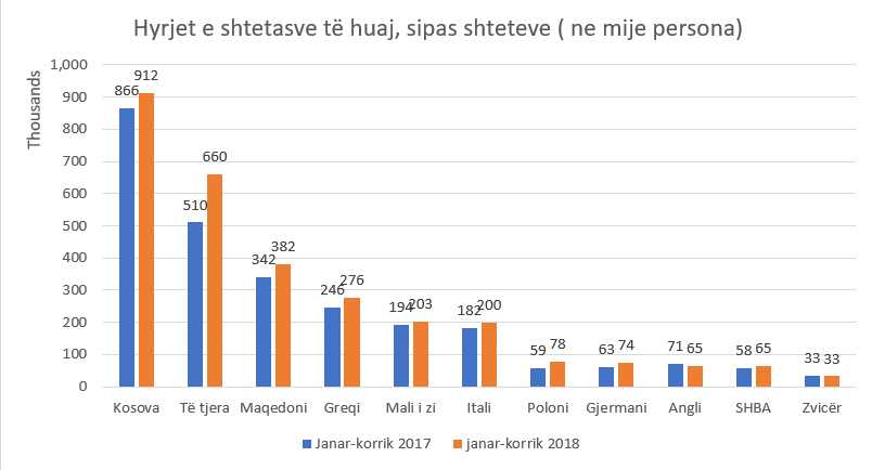 Edhe shqiptarët preferojnë të udhëtojnë gjithnjë e më shumë jashtë vendit. Numri i shtetasve shqiptarë të dalë nga territori i Shqipërisë gjatë muajit Korrik 2018 është 465.626. Krahasuar me Korrik 2017, ky numër është ulur 6,2 %. Numri i shtetasve të huaj të dalë nga territori i Shqipërisë gjatë muajit Korrik 2018 është 970.178. Krahasuar me Korrik 2017, ky numër është rritur 12,0 %. Numri i shtetasve shqiptarë të dalë nga territori i vendit tonë, në shtatëmujorin e 2018 është 2.861.943, duke u rritur me 3,7 %, krahasuar me të njëjtënperiudhë të një viti më parë./Monitor/