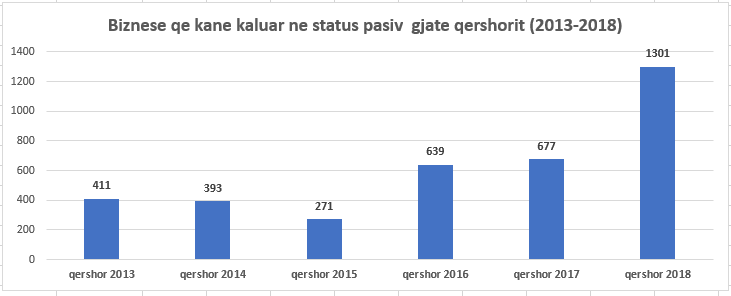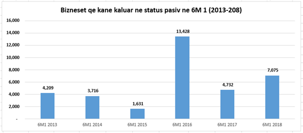 Në total gjashtë mujori i pari i vitit 2018 shënoi 7,058 biznese që kaluan në statusin pasiv, nga 4732 që ishin në gjashtë muajt e parë të vitit 2017, me një rritje prej gati 50% .