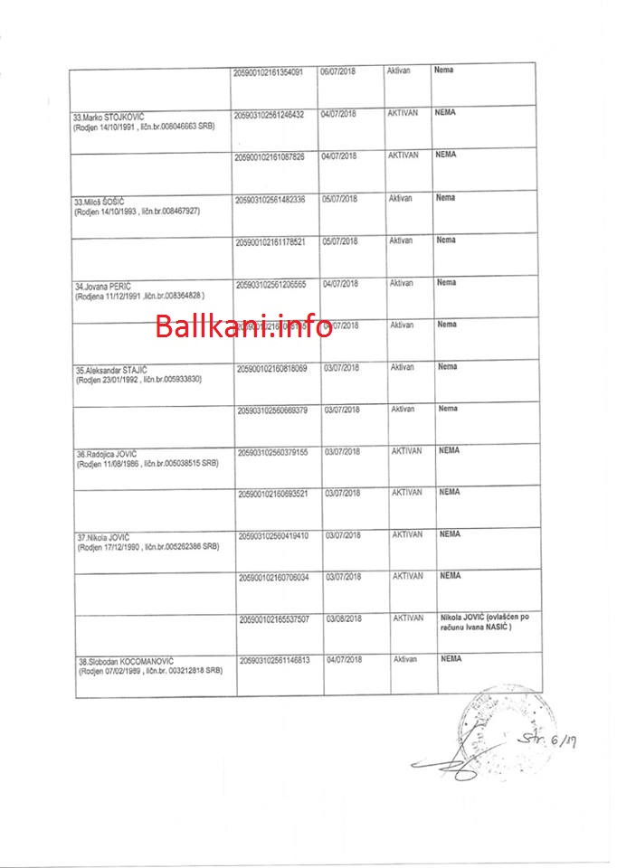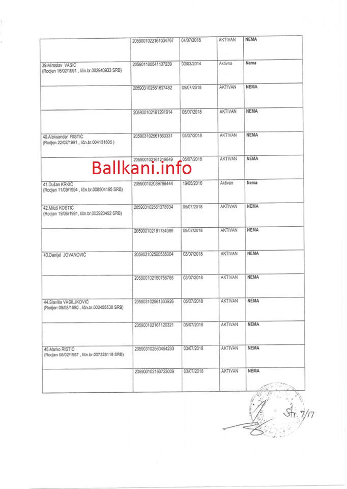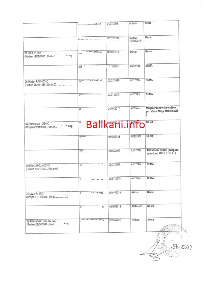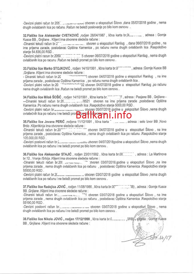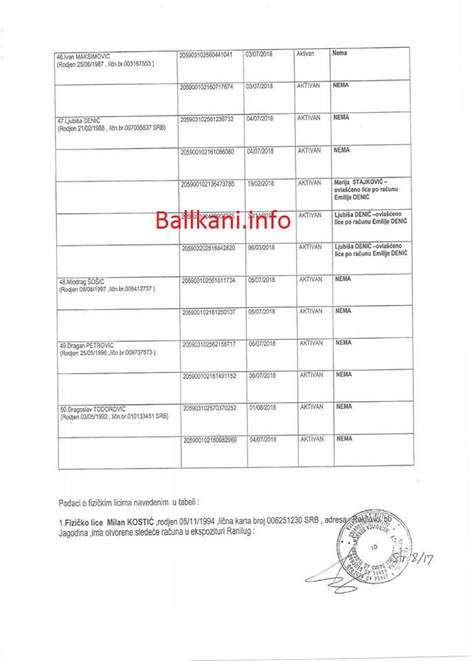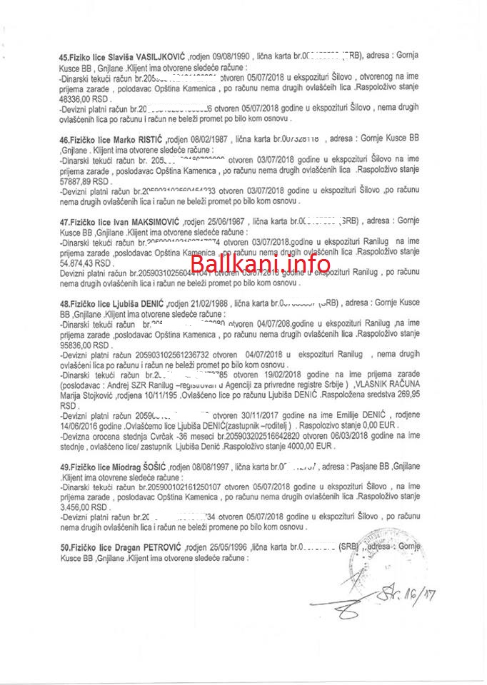 Të gjithë këta persona, pjesëtarë të Forcës së Sigurisë së Kosovës të komunitetit serb, siç dëshmohet edhe përmes dokumenteve të siguruara, kanë hapur llogari bankare në “Komercijalna Banka” të Serbisë që operon në territorin e Kosovës.