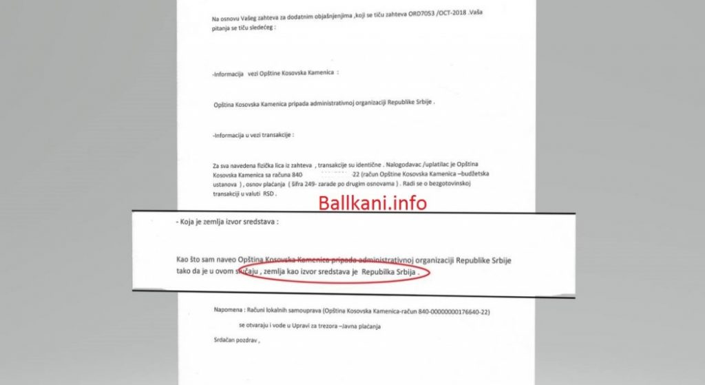 Urdhërues/kryes i këtyre pagesave, sipas dokumenteve, është “Opstina Kosovska Kamenica” nga llogaria bankare 840-00000000176640-22, kurse arsyeja e pagesës bazohet në kodin buxhetor “Shifra 249 – përfitime në baza tjera” dhe transaksionet janë bërë në dinarë të Serbisë.