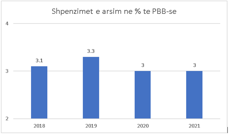 Sipas planifikimit afatmesëm të Ministrisë së Financave, shpenzimet për arsimin nga 3.1%- 3.3 për qind e PBB-së më 2018-2019 do të zbresin në 3 % në 2020 dhe 2021.